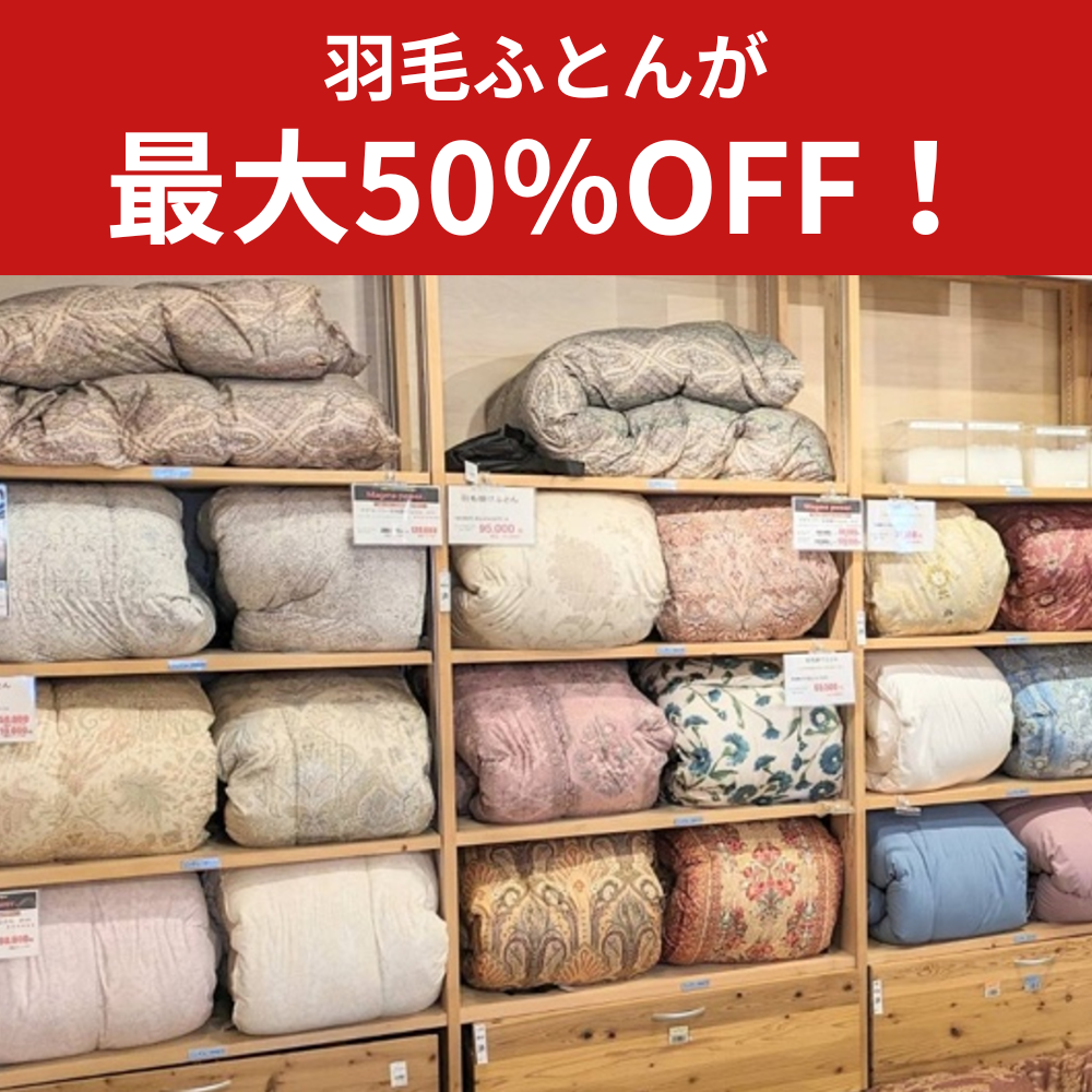 さらマットレス、羽毛布団、まくらなど最大50%OFFで売り尽くし。価格はもちろん特典などもご用意してお待ちしております。