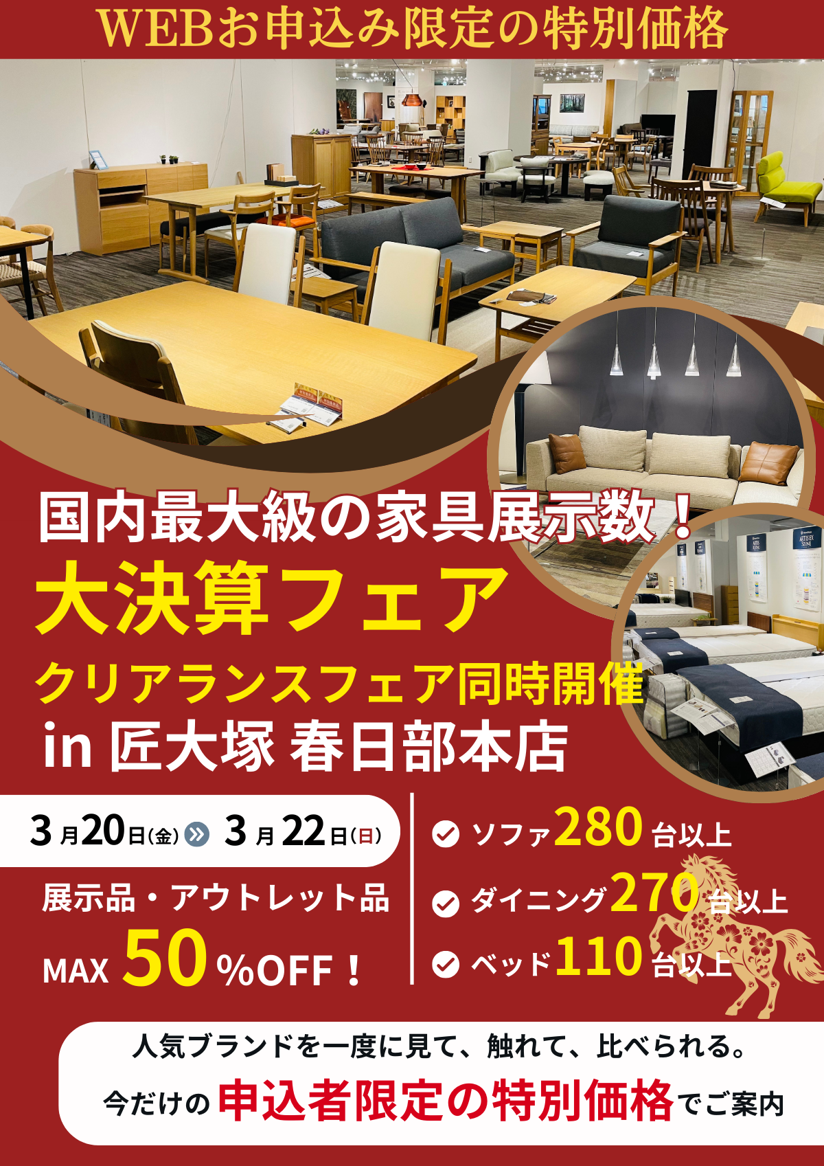 日本最大級の家具・インテリア専門店の匠大塚 春日部本店で期間限定の家具・インテリア 大決算フェアを開催いたします。